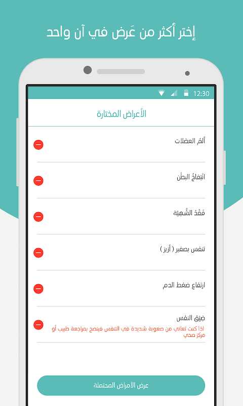 بختيارك للاعراض التي تشكو منها في جزء او اجزاء معينة من جسمك يمكنك معرفة الامراض المحتملة التي تعاني منها ويمكنك قرا المزيد عن تلك الامراض ومعرفة اسبابها وطرق علاجها .