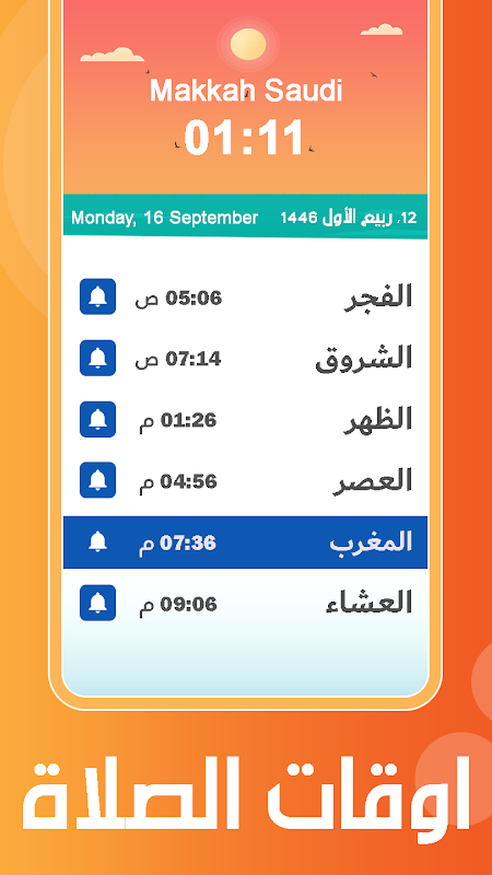 কুরআন অফলাইন এবং নামাজের সময়, আথান অ্যালার্ম, অটো আতকার, কিবলা দিকনির্দেশ, তাসবীহ