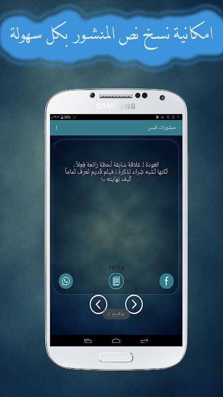 تطبيق منشورات فيس حلوه يتمتع بكل ما هو جديد من الرسائل النصية الني تساهم في نشر المحبة بين الاصدقاء من خلال تبادلها بينهم