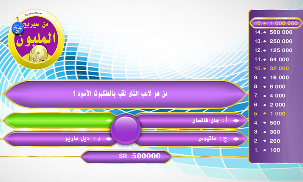 Après le succès du concours du Qui gagne le million on est développé la deuxième version, mais cette fois-ci les questions de sport seulement de football en particulier et nous travaillons sur d'autres copies seront lancées dans un proche avenir, si Dieu le veut.