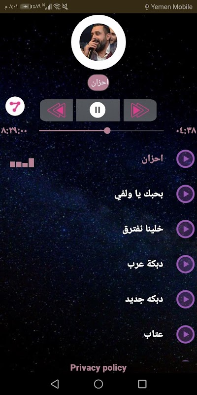 وفي الاخير نشكرك على اختيارك تطبيق نعيم الشيخ من اجل الاستماع الى الاغاني الموجودة.