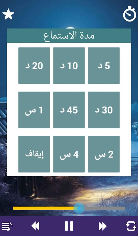 التطبيق يتيح تحديد وقت لإيقاف الموسيقى، وهكذا تتوقف بعد انتهاء المدة الزمنية المحددة