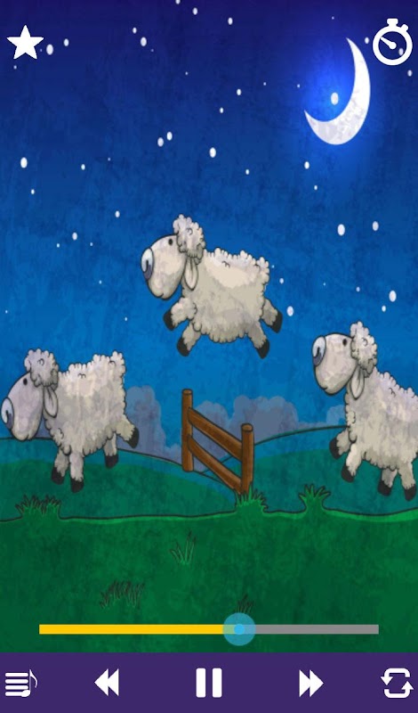 يتوفر تطبيق نوم الأطفال على مشغل أغاني يعطي إمكانية تكرار تشغيل كافة القائمة، أو تكرار أغنية واحدة