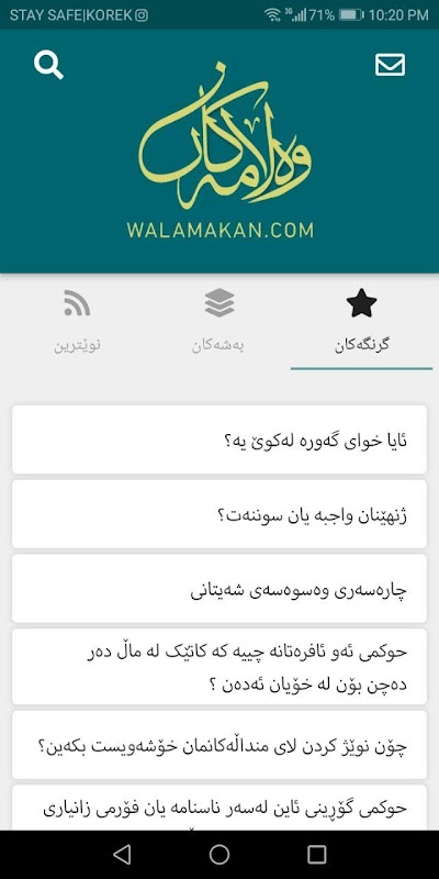 وەڵامەکان خزمەتگوزاریەکە بۆ وەڵام دانەوەی پرسیار و بەدەست هێنانی وەڵامی پرسیارە شەرعیەکان کە لای تاکی کورد دروست دەبێت سەبارەت بە شەریعەت و حوکمە ئیسلامیەکان, کە بەڕێگایەکی ئاسان و خێرا وەڵام دەدرێنەوە, بەکارهێنەر دەتوانێت لەڕێگەی پۆستی ئەلیکترۆنیەوە پرسیارەکانی بنێرێت پاشان لەلایەن مامۆستایانی شارەزای ئاینی وەڵام دەدرێنەوە, وەڵامەکان تەنها ماڵپەڕنیە لەئێستادا دەتوانن ئەپلیکەیشنەکانی بۆ سیستەمی iOS و অ্যান্ড্রয়েড دابەزێننە ناو ئامێرەکەت بەبەردەوامی لەکاتی هەبوونی هێڵی ئینتەرنێت یاخود نەبوونی وەڵامی پرسیارەکانت دەستبکەوێت।