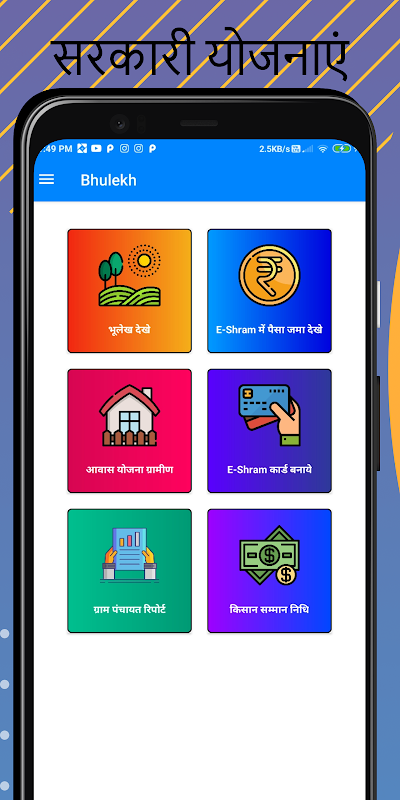 In this app you can see the land of you or your family or any person from your phone. In the app, you have to enter your Khasra number or name, so that you will know the copy of Khasra Khatauni. Along with this, you can also get information about other important schemes.