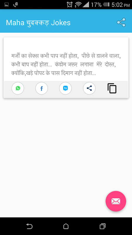 * You can any joke by one click on whats app, facebook,twitter,telegram,line, message etc.