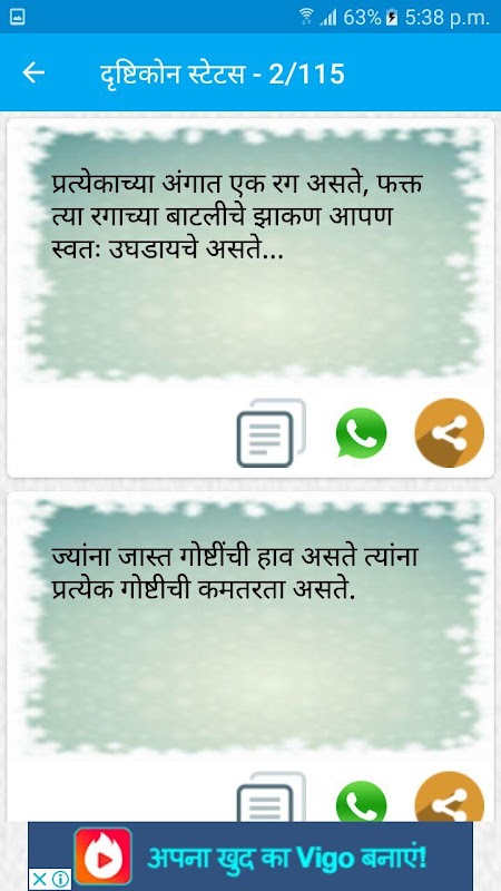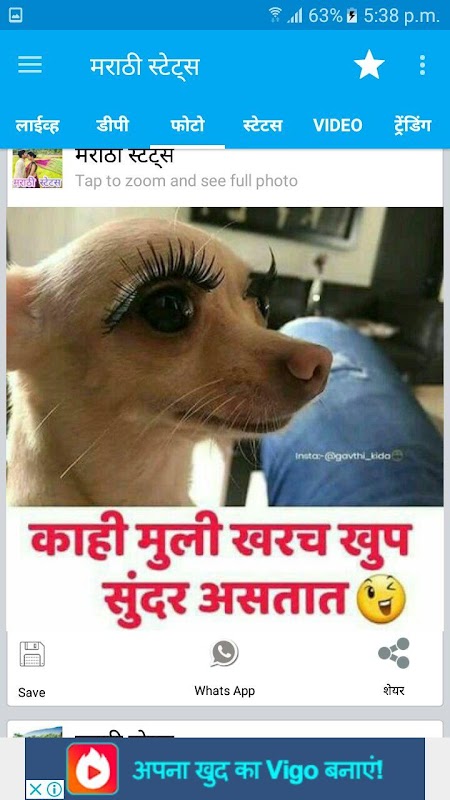 Marathi zingat status app contains different categories status collection in marathi font.