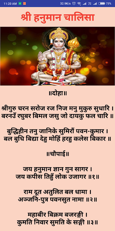 Read hanuman chalisa in hindi read any where easily with this android app.