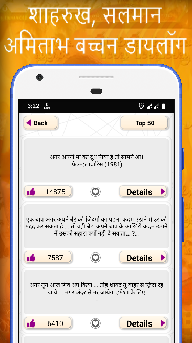 আপনার বন্ধুদের সাথে এই হিন্দি অনুপ্রেরণামূলক চলচ্চিত্র ডায়ালগ অ্যাপটি শেয়ার করুন। এবং আমাদের পাঁচ পাঁচ দিতে ভুলবেন না * গুগল খেলা ডাউনলোড লিঙ্ক-