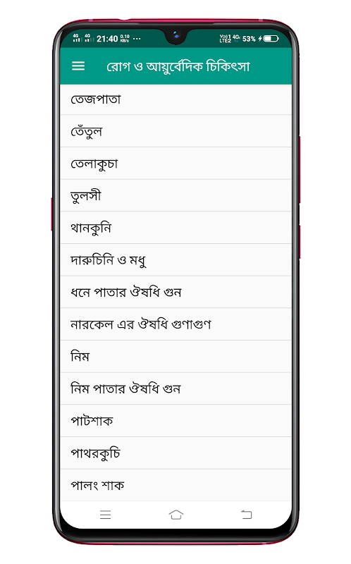 'আয়দিক চিকিৎসা ভেষর্বে' অ্যাপে অন্তর্ভুক্ত বিষয়গুলি রয়েছে।