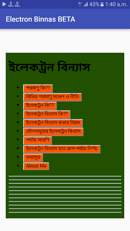 এই অ্যাপের মাধ্যমে আপনি ইলেকট্রন ও ইলেকট্রন বিন্যাস সম্বন্ধে বিস্তারিত জানতে পারবেন।