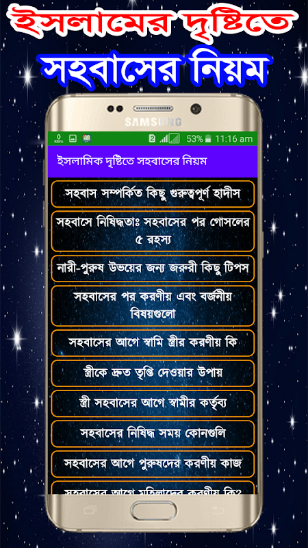 ইসলামে স্বামী স্ত্রীর সহবাসের সঠিক নিয়ম সমূহ নিয়ে আমাদের অ্যাপটি তৈরি হয়েছে।