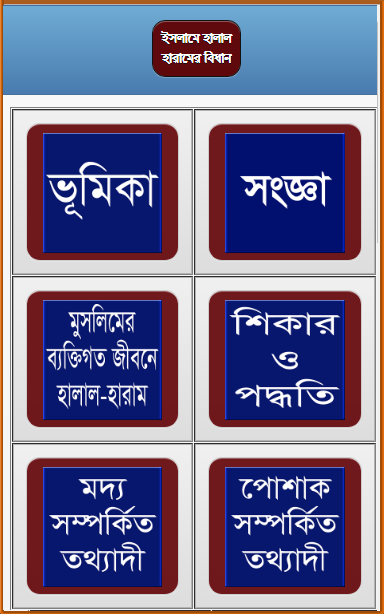 ইসলামে কি কি হালাল হারামের বিধান আছে সেগুলো নিয়ে এই অ্যাপ সাজানো হয়েছে।