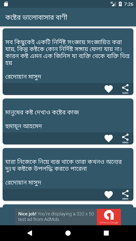 কষ্টের ভালোবাসার বাণী অ্যাপে যা আছেঃ