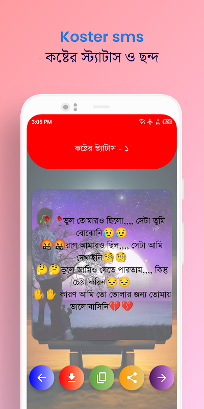 কষ্টের স্ট্যাটাস ও ছন্দ পোষ্ট নিয়ে আমাদের এই নতুন অ্যাপসটি যেসব বিষয় রয়েছে-