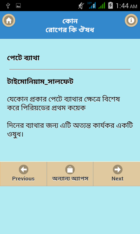 Before having any medicine, it is important to know the medical instruction. In this health mobile application we have included a complete medicine guide of medicine that need every day. All we suffer for some common and general problems and this medicine will give you release.
