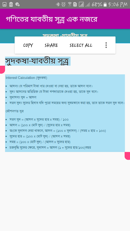 আমরা যার গণিতে ছাত্র বা বিজ্ঞান বিভাগের ছাত্র তারা অংক করার সময অনেক ঝামেলা পড়েতে হয় যেমন সূত্র মনে থাকেনা তাদের কথা চিন্তা করে গণিতের সূত্রের বাংলা এপস্ টি বানানো।