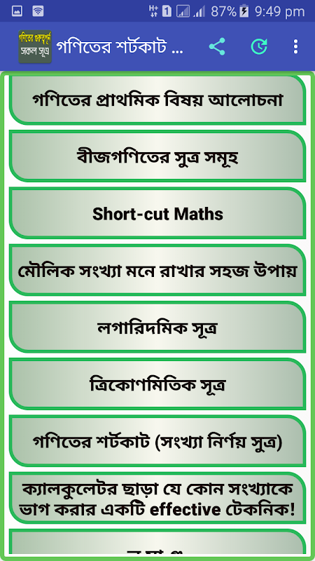 It will works good on math formula book of class nice and ten as well. This app will enlarge your knowledge on math shortcut bcs bank job. If you want to expert in bcs math then this is the best math bangla and bangla math apps for you. Hope for the best success for your life.