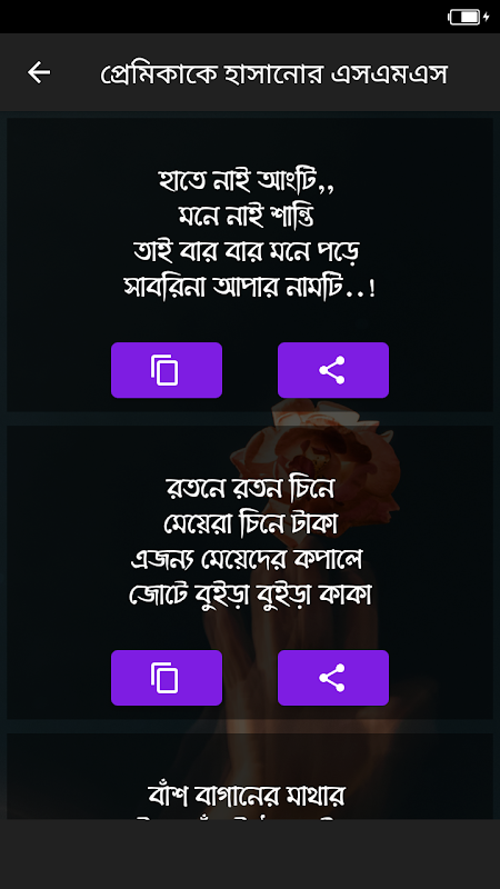 গরিবের ভালোবাসার এসএমএস- সকল ধরনের ক্যাটাগরি এসএমএস এড করা হয়েছে এই অ্যাপটিতে - ও রয়েছে নিত্য নতুন পোষ্ট ও স্ট্যাটাস - এই অ্যাপটি থেকে প্রেমিক-প্রেমিকার মন ও হৃদয় কে খুবই পটানোর জন্য কার্যকর হবে । এবং রয়েছে প্রেমের হাসির মজার কষ্টের ইসলামিক ও ইত্যাদি ধরনের স্ট্যাটাস ও । এবং প্রত্যেকটি এসএমএস শেয়ার করার সহজ সুবিধা রয়েছে এবং Day এবং Night মুড করার অপশনও রয়েছে - এবং নিত্য নতুন ডিজাইন রয়েছে অ্যাপটিতে - আশা করি আমার এই অ্যাপটি সকল গরীব ও মধ্যবিত্তদের কাছে খুবই ভালো লাগবে ।