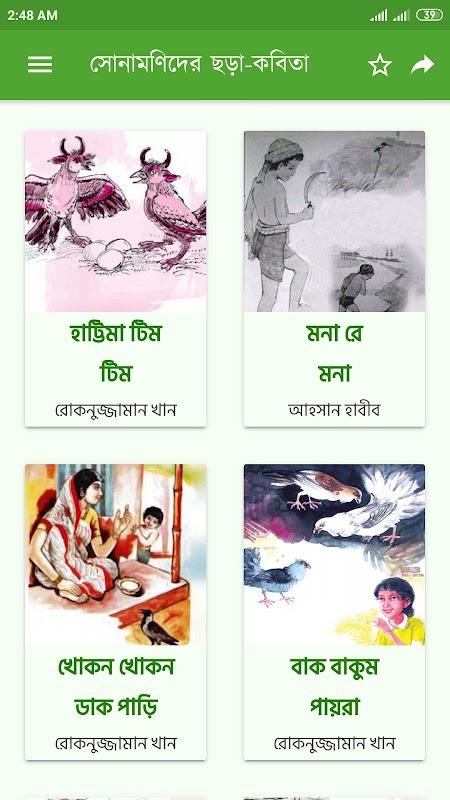 This is an app for ‘choto sonamonider mojar bangla chora’ with picture. It includes ‘bacchader misti kobita gaan’. It can work as mp3 sleeping baby songs with colorful image and lyrics for your beloved children. This kids rhymes app in bengali will also serve as something like children bangla poem audio rhyme.