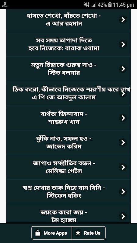 We release this inspirational quotes is really very nice educational apps. Inspirational quotes will motivate our life to take a better action in our life. Inspirational quotes in bangla will help the people who are having less confidence in their life. I would say this inspirational quotes in bangla will help them to build their confidence. We added here the best inspirational quotes about life. People will know how to get success in life and control their lifestyle using this application. They can also use these bangla quotes for facebook status . I can say this bangla bani will take a good part changing your life.