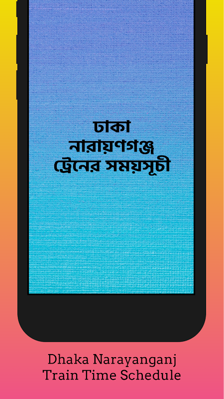 এই অ্যাপটি ব্যবহার করে জানুন ঢাকা থেকে নারায়ণগঞ্জ এবং নারায়ণগঞ্জ থেকে ঢাকা ট্রেনের সময়সূচী। ঢাকা নারায়ণগঞ্জ ট্রেনের সময়সূচী অ্যাপটি ব্যবহার করা সহজ।