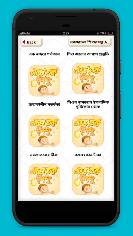 নবজাতক শিশুর জন্মগ্রহন থেকে শুরু করে শিশুর স্বাভাবিকভাবে বেড়ে উঠা সবকিছু অত্যন্ত সাবধানতার সাথে করতে হয়। এই অ্যাপ এর মাধ্যমে আমরা জানতে পারব নবজাতক শিশুর পরিচর্যা কি করে করতে হবে,শিশুকে কখন কোন টিকা দেয়া অত্যাবশ্যক,শিশুর টিকার তালিকা,শিশুদের স্বাস্থ্য, গর্ভবতী ও নবজাতকের যত্ন, শিশুর নাম কিভাবে দিবেন, শিশুর নাম নির্বাচন এর প্রয়োজনীয়তা অভিজ্ঞ ডাক্তারদের পরামর্শ থেকে বিষয়বস্তু আলোচনা করা হয়েছে।