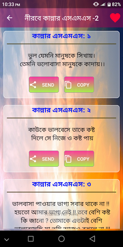 অভিমান এমন একটা জিনিস যা একমাত্র ভালোবাসার মানুষ এর সাথেই করা যায়। আর সেই কষ্টকে গিরে নীরবে কান্না এসএমএস নিয়ে আমাদের এই অ্যাপটি। এই অ্যাপটিতে রয়েছে সকল নীরবে কষ্টের এস.এম.এস।