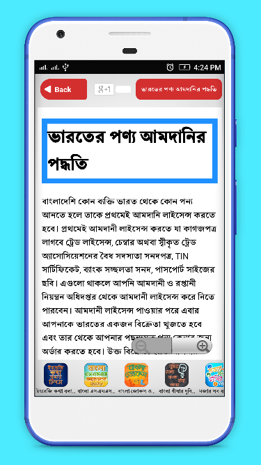 ভারত, কাতার, ইন্দোনেশিয়া, সহ ভিবিন্ন দেশ থেকে মোবাইল, কম্পিটার, ইলেক্ট্রনিক্স সহ কৃষি পণ্য, শিল্পজাত পণ্য,প্লাস্টিক, বস্ত্র, খাদ্য পণ্য ইত্যাদি আমদানি রপ্তানি কিভাবে করবেন এর সম্পর্কে বিস্তারিত জানুন এই অ্যাপ থেকে। এছাড়া এই অ্যাপটিতে রপ্তানি বানিজ্য সম্পর্কেও অনেক ইনফরমেশন দেওয়া হয়েছে। এই অ্যাপটির মাধ্যমে আপনারা ট্রেড লাইসেন্স কিভাবে করতে হয় কোথায় করতে হবে বিস্তারিত এই অ্যাপটিতে দেওয়া হয়েছে। এছাড়া ব্যাংক সম্পর্কিত অনেক কিছুই জানতে পারবেন এখান থেকে। তাই যারা কিনা পণ্য আমদানি রপ্তানি করে আয় করতে চান তারা আর অপেক্ষা না করে অ্যাপটি আজই ডাউনলোড করে নিন। আমাদের এই অ্যাপটিতে আপনাদের জন্য যা যা থাকছে----