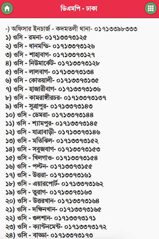 - ঢাকা জেলা ও বিভাগের সকল থানার পুলিশের নম্বর।