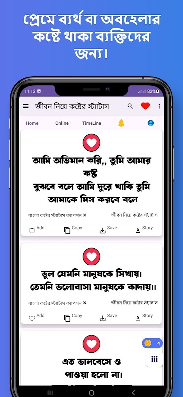 কষ্টের কথাটাস ও ক্যাপশন" অ্যাপটি হৃদয় ছোঁয়া কষ্টের টাস ২০২৪ প্রদান করে।