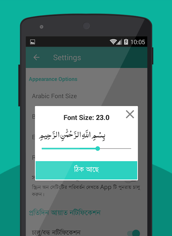 বি:দ্র:- আরবি কোরআন বাংলা উচ্চারণে পড়ার কারণে সোয়াবের পরিবর্তে গোনাহ(পাপ) হওয়ার সম্ভাবনাই বেশি থাকে, বাংলা উচ্চারণে কোরআন পড়িলে তাজবীদ সঠিকভাবে পালন করা হয় না। সেই কারণেই এই অ্যাপটিতে বাংলা উচ্চারণ দেয়া হয়নি।