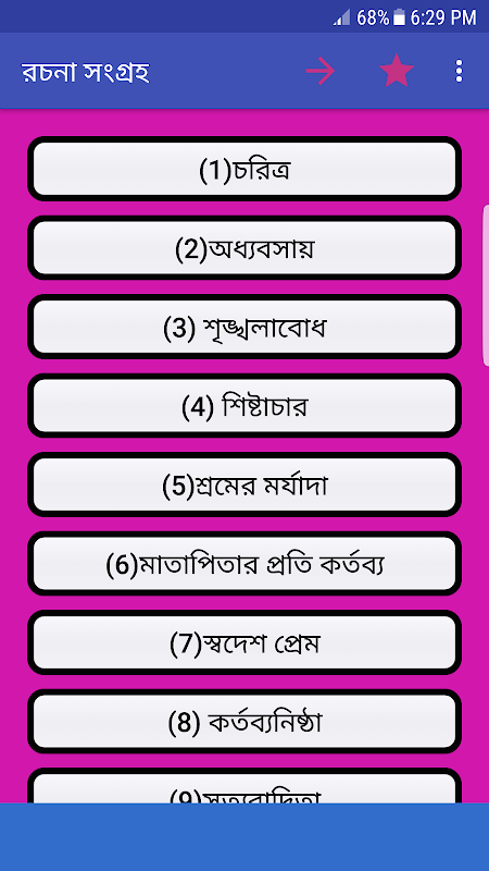 আমাদের অ্যাপসটিতে আপনি বাংলা রচনার সংগ্রহ পাবেন। যা অত্যন্ত ভালো একটি অ্যাপস।