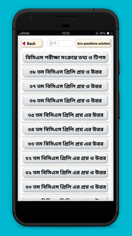 The main purpose of this app is to give all candidates who are preparing themselves for bcs exams.Bcs exam is one of the desiring examinations in Bangladesh. So the issues of this app is bcs question bank and solutions in bangla.Hope that everyone will love this app.