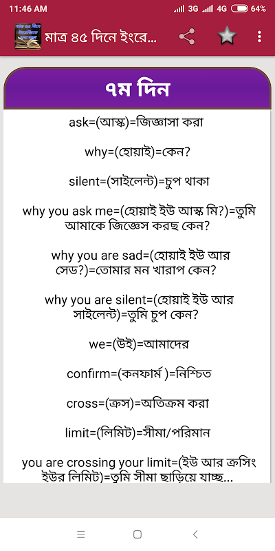 It is a Educational app for learn spoken english from bengali. It is a very easy way to learn spoken english app and how to learn spoken english app. It is all time offline apps for how to learn spoken english so, learn english in 45 days.