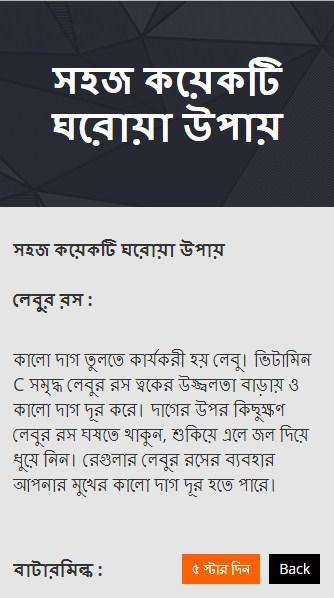 এটি একটি বাংলা অ্যাপস্ । মুখের কালো দাগ দূর করার ঘরোয়া উপায় ।