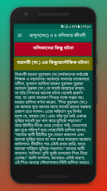 আমাদের প্রিয় নবী শ্রেষ্ঠ নবী হযরত মুহাম্মদ ( সঃ ) ।আমরা নবী করীম ( সঃ ) এরউম্মত।নবী করীম (সঃ ) হচ্ছেন আল্লাহর রাসুল। তাই আমাদের প্রিয় নবী হযরত মুহাম্মদ ( সঃ ) এর জীবনী সম্পর্কে আমাদের কিছুটা হলেও জানা দরকার।এছাড়া ইসলামের চারজন খলিফা, যাদের খোলাফায় রাশেদীন বলা হয় তাদের জীবনি সম্পর্কে জানব।এ মহৎ ব্যাক্তিদের জিবনী আদর্শ অনুসরণ করে আমরা আমাদের জীবন গঠন করার চেষ্টা করব।এই এ্যাপটিতে যাদের জিবনি উল্লেখ্য করেছি -তারা হলেন আমাদের প্রিয় নবী হযরত মুহাম্মাদ সাঃ এর জীবনি ও হযরত আবু বকর রাঃ এর জীবনি এবং হযরত উমর/ওমর রাঃ এর জীবণি এছাড়া হযরত উসমান রাঃ এর জিবনি সহ হযরত আলী রাঃ জিবনী।