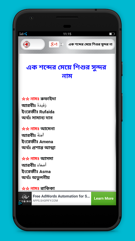 এখানে আমরা আপনাকে আমাদের অ্যাপ্লিকেশন দ্বারা মেয়েদের জন্য ইসলামী নাম Bangla প্রদান করা হয়। প্রতি নবজাতক শিশুর শিশুর একটি ভাল এবং সুন্দর নাম প্রয়োজন। কিন্তু মেয়েদের ইসলামিক নাম কীভাবে খুঁজে পাচ্ছেন? খুব সহজ যদি আপনি আমাদের অ্যাপ্লিকেশনটি "মেয়েদের জন্য ইসলামিক নাম" ডাউনলোড করেন তবে আপনাকে বাংলায় প্রচুর ইসলামিক নাম এবং অর্থ পাবেন। আমাদের অ্যাপ্লিকেশন একটি মেয়েদের নাম বই / ইসলামী শিশুর নাম বই মত। কিছু সময় আমরা শিশুর একটি নাম দেয়। কিন্তু আমরা জানি না নামটির অর্থ কী। সুতরাং, যে সম্পর্কে সতর্ক হতে হবে। মেয়েদের জন্য কোন নাম দেওয়ার পর প্রত্যেকেরই বাঙালি ভাষায় ইসলামী নাম জানাতে হবে। "বাচ্চাদের ইসলামী নাম" এর অর্থ কী, তার মানে arbi / arabic বাচ্চাদের নাম।