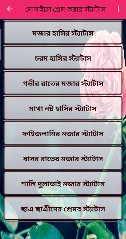 আপনাকে আর কষ্ট করে মোবাইলে প্রেম করার স্ট্যাটাস খুজতে হবে না এই অ্যাপসটিতে আছে অনেক অনেক মোবাইলে প্রেম করার স্ট্যাটাস।