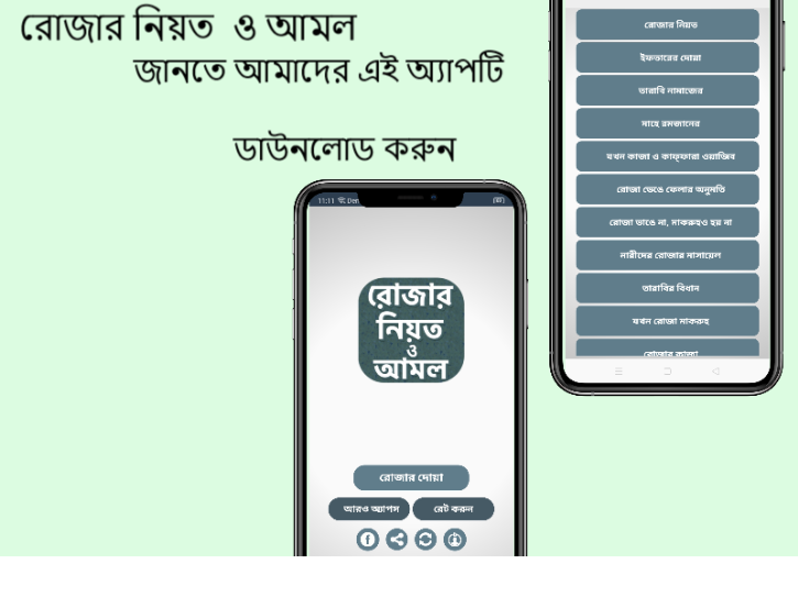 রোজার নিয়ত আমাদের সবার জন্য গুরুত্বপূর্ণ। রোজার নিয়ত বাংলা আমাদের এই অ্যাপ্লিকেশনটি বানানো হয়েছে।