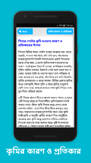এই অ্যাপটি থেকে শিশুদের বেশ কিছু জটিল রোগ ঠান্ডা জনিত সমস্যা ও অন্য যে কোন সমস্যা সম্পর্কে বিস্তারিত জানতে পারবেন। এই অ্যাপটি ব্যবহার করলে আপনার শিশুর ছোট খাটো সমস্যা নিয়ে ডাক্তারের কাছে যেতে হবে না। আশা করি আমাদের এই মোবাইল অ্যাপটি আপনাদের ভাল লাগবে।