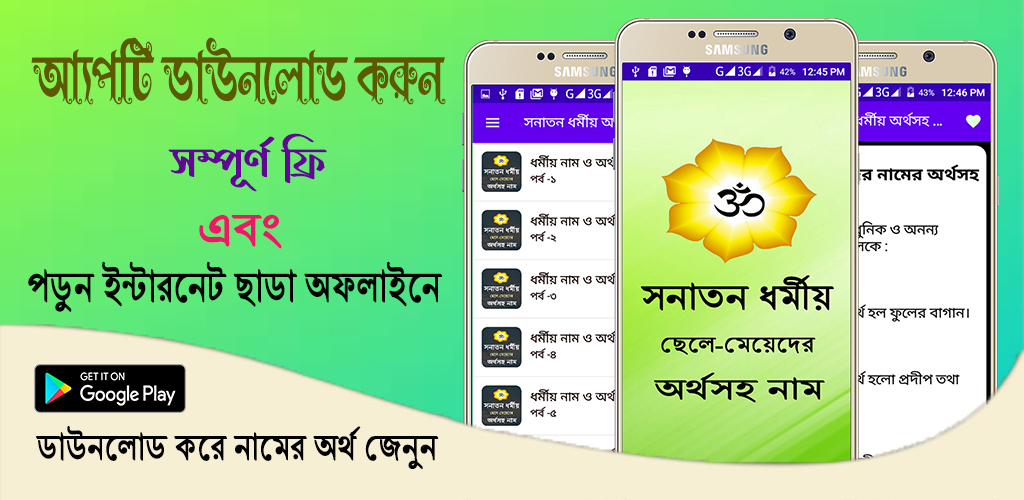 অ্যাপটিতে সনাতন ধর্মীয় শ্রুতিমধুর ও আকর্ষণীয় নাম রয়েছে এবং সাথে অর্থ রয়েছে।