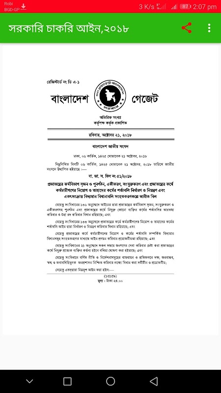 Government Jobs Act, 2018(Bangladesh Parliament Bill No. 51/018)
