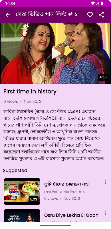 All the EntertainerZ store apps in this store are made to completely entertain purposes. We have created apps to bring together the best bangla music videos and audio songs of famous artists from all over the country. This app will be updated regularly with the newly released Bengali audio video songs including popular music videos, movie songs of Sabina Yasmin by popular artists.