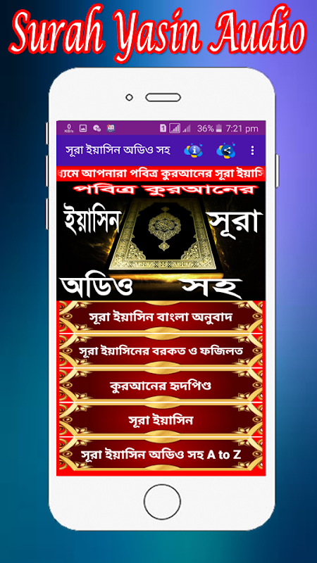 পবিত্র কুরআনের সুরা ইয়াসিন অডিও বাংলা অনুবাদ সহ আমাদের অ্যাপটি তৈরি করা হয়েছে।