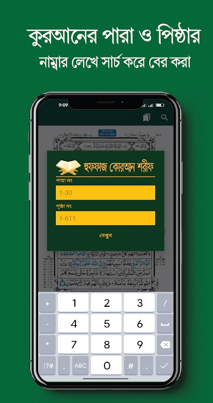 কোরান শরীফের পৃষ্ঠা গুলো পরিবর্তন করতে বাম ধিক থেকে ডান ধিকে টানুন।