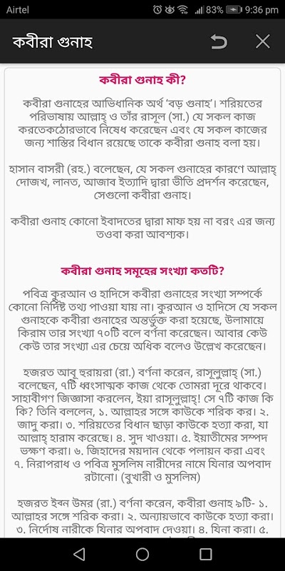 এই অ্যাপটিতে ১০১ টি কবীরা গুনাহ ও এর থেকে বাঁচার উপায়