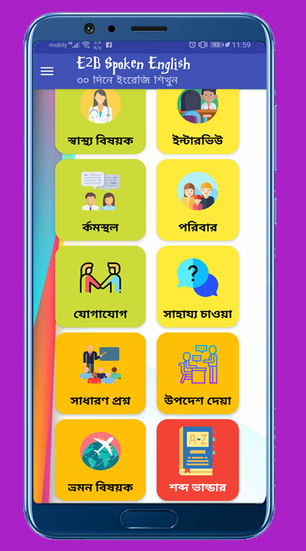 ৩০ দিনে ইংরেজি শেখার জন্য আমরা আপনার জন্য তৈরী করেছি E2B ৩০ দিনে ইংরেজী শিখুন এই অ্যাপস টি ।