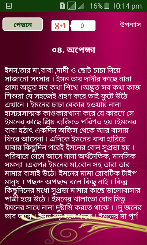 পৃথিবীতে এমন মানুষ খুঁজে পাওয়া দুষ্কর যে কিনা বাংলা উপন্যাস (Bangla uponnas)পড়তে পছন্দ করে না। আমরা বাঙ্গালীরাও প্রচুর বাংলা উপন্যাস (Bangla uponnas) পড়ি কিন্তু। কেউ পড়ে হুমায়ূন আহমেদ এর উপন্যাস (humayun ahmed all books bangla or begnali story book), জহির রায়হান এর বাংলা উপন্যাস (book bangla) , কেউ পড়ে ছোটদের বাংলা গল্প , ছোটদের মজার গল্প (chotoder mojar golpo), ছোটদের শিক্ষামূলক উপন্যাস (story book in bengali) যাতে ছোটরাও বাংলা উপন্যাস বই (Bangla uponnas)থেকে অনেক কিছু শিখতে পারে। তাদের সুস্থ বিনোদনের মাধ্যম হিসেবে কাজ করবে বাংলা উপন্যাস অ্যাপ।