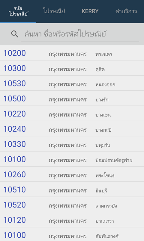 ไปรษณีย์ KERRY รหัสไปรษณีย์ไทย 1.1.0